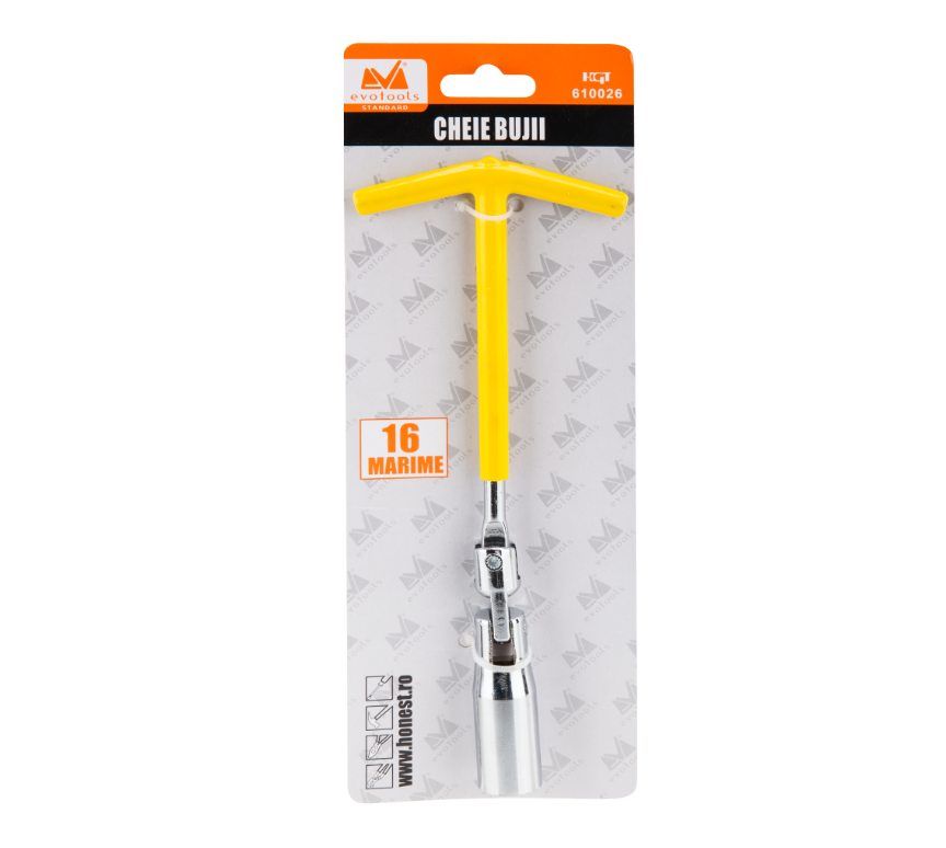 Cheia pentru bujie este o unealta specializata folosita in procesul de intretinere si reparare a motoarelor cu ardere interna, cum ar fi cele de pe masini, motociclete sau alte vehicule cu motoare pe benzina sau motorina. Aceasta cheie este proiectata pentru a extrage si insuruba bujiile, care sunt componente esentiale ale sistemului de aprindere al unui motor. Specificatii: Cheia este confectionata din otel forjat de cea mai buna calitate, tratat termic, cu duritatea cuprinsa intre 42-48 HRC. Finisajul nichelat protejeaza cheia impotriva zgarieturilor, oferindu-i un aspect placut. Cheia are profilul hexagonal.